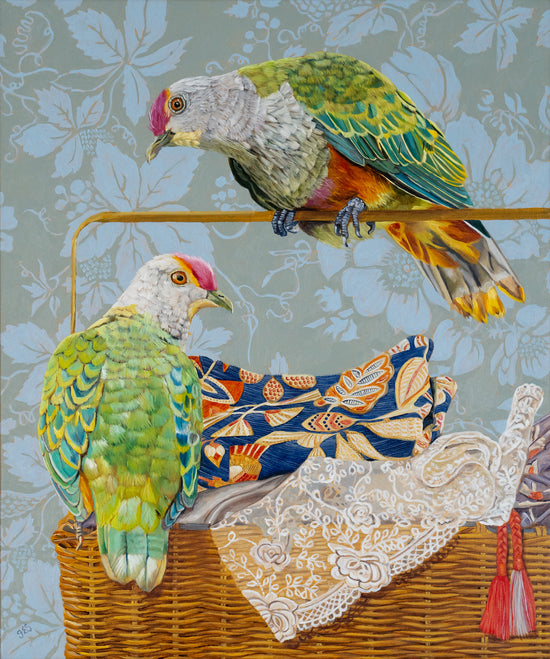 Sewing Basket, Rose Crowned Fruit Doves at Michael Reid Murrurundi